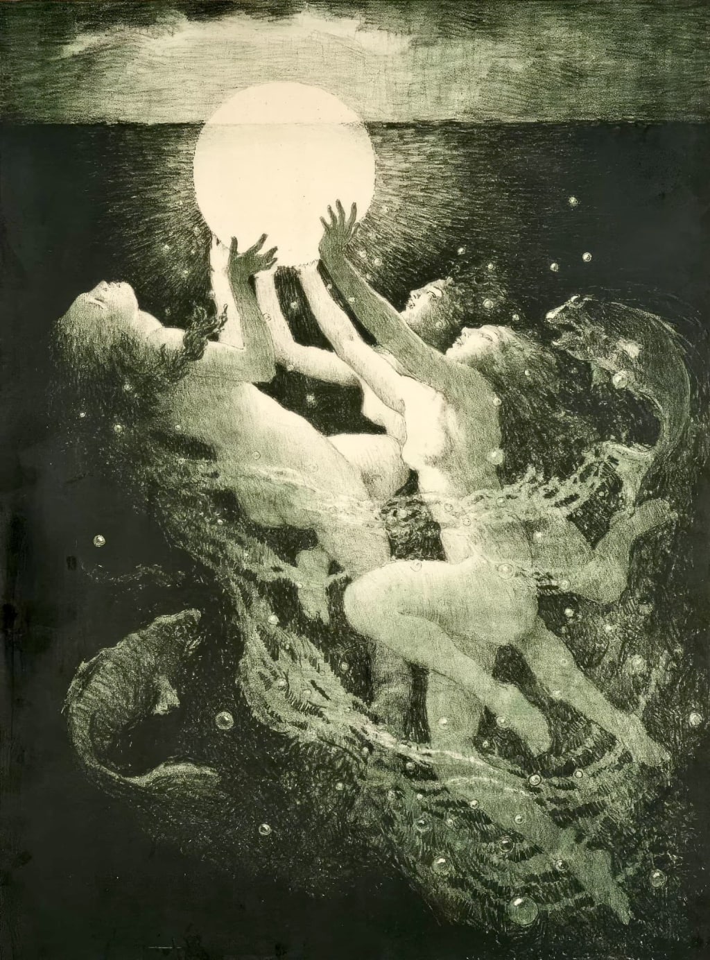 The water maidens have dragged the Sun from its bed and pushed it above the rolling waves to do its job and light the world once more.