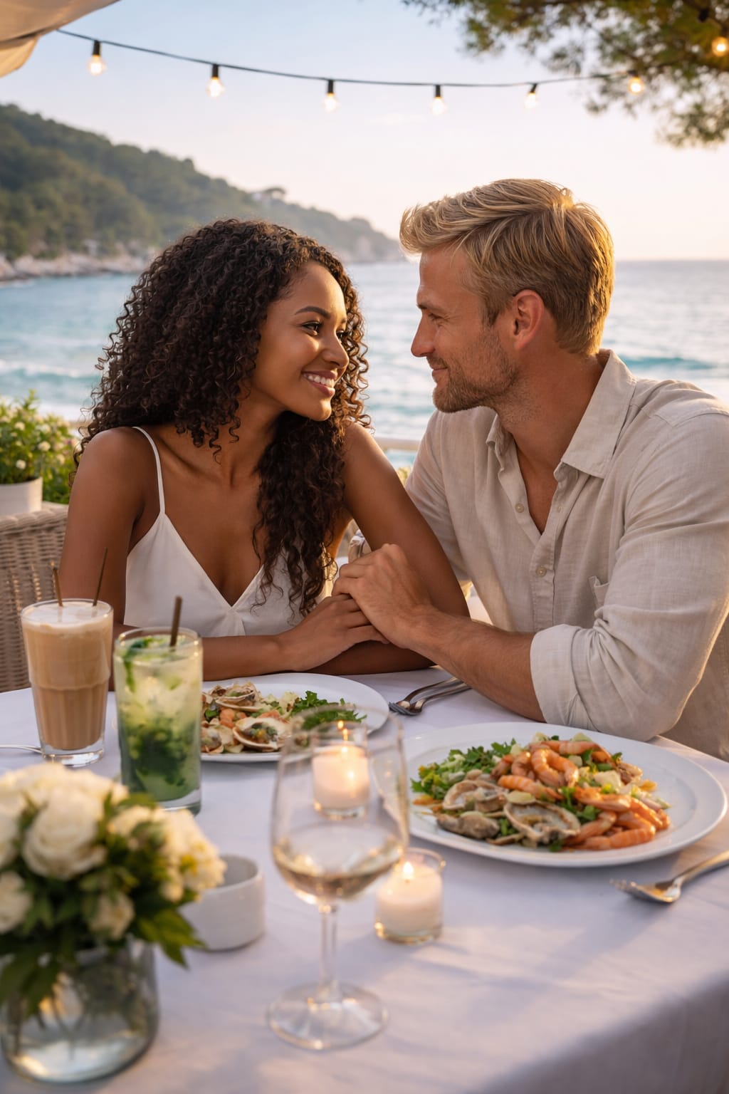 The waitress takes us to our table. We’re nestled in a corner overlooking the deep blue water. It’s so picturesque. I’m soaking in this moment right now, with gratitude. Bailey comes back over and asks to take our order. I order an Iced Chai Tea to start and my usual from the lunch menu. Barry orders a Mocktail and goes for the Seafood Platter.