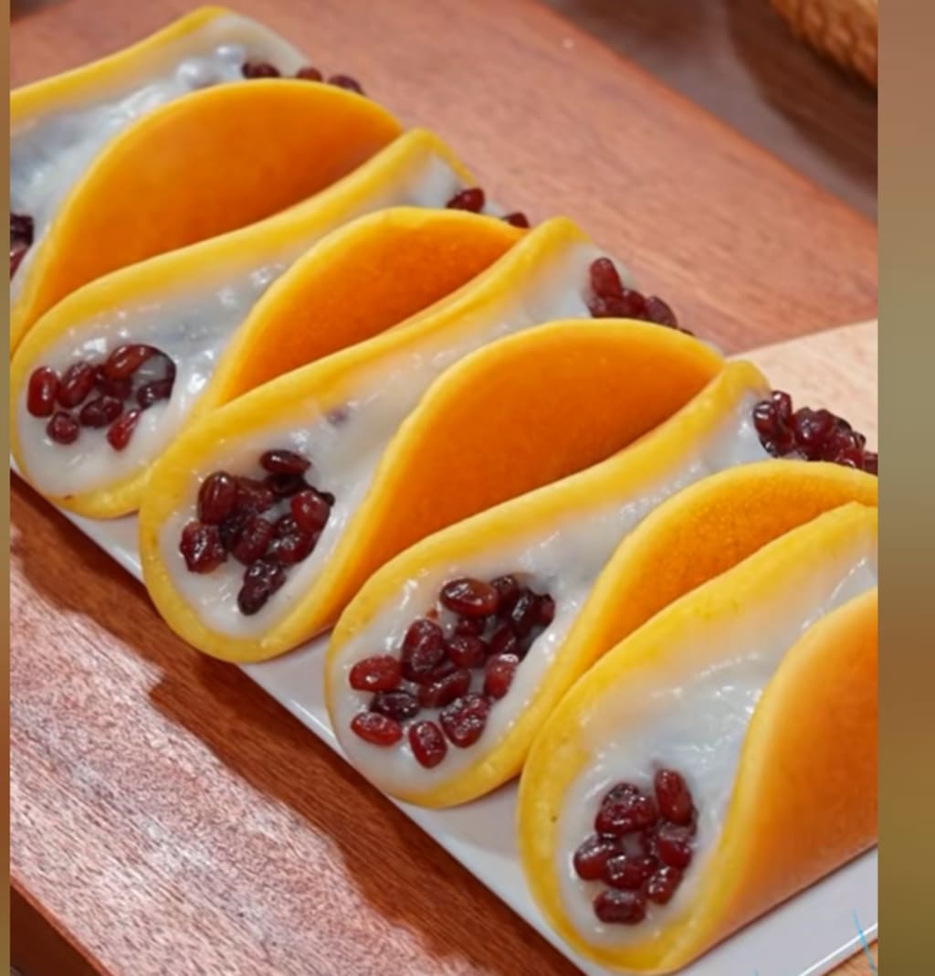 How to Make Them: Mix 180g flour, 4 eggs, 50g sugar, 3g yeast, and 130g milk until smooth. Let rise until doubled in volume. Pour batter into a dry, oil-free pan over the lowest heat. When bubbles appear, flip and cook for 10 seconds. For the mochi filling: combine 100g glutinous rice flour, 20g cornstarch, 180g milk, and 30g corn oil in a pan (don't turn on the heat yet). Stir until smooth, then cook over low heat, stirring constantly until it forms a dough. Spread mochi on the pancake, add sweet red beans, and fold. Each bite offers soft, chewy, and sweet textures in perfect harmony.