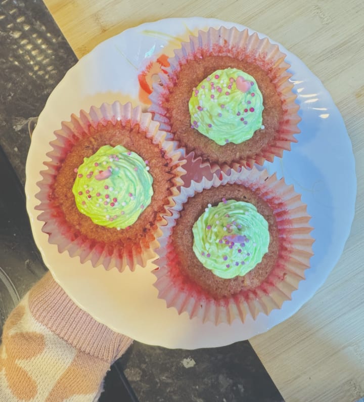 - When out of the oven, take the cupcakes from the tray and place on a cool plate (your cupcakes might be all nice and pink from the inside without the use of food colouring - mine definitely were!)