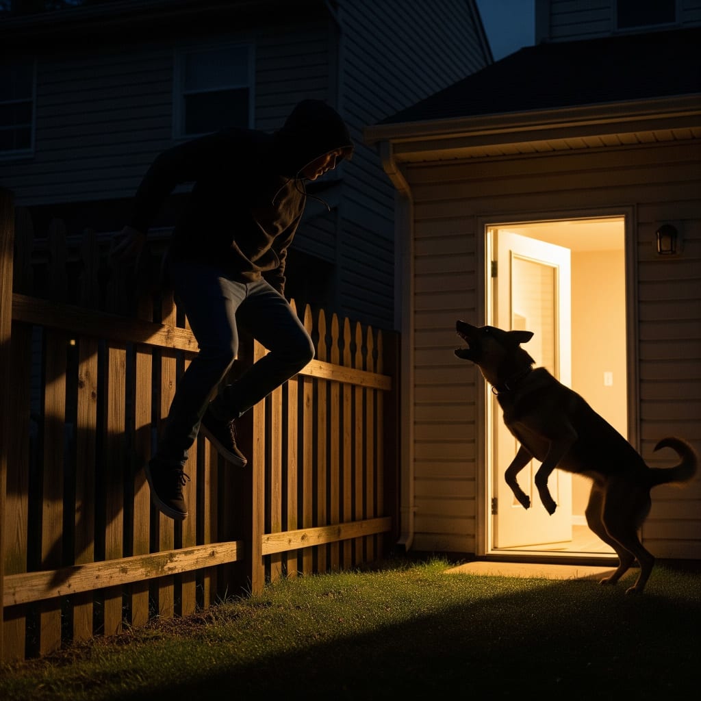 Teddy climbed the fence into the backyard. He walked towards the rear of the house. So far, things were going great.