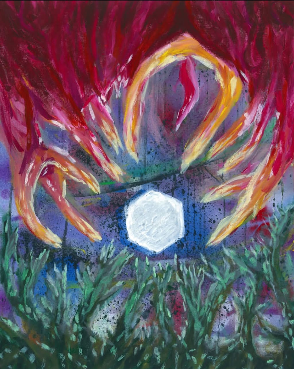The teacher let him go and moved over to a window in quiet contemplation of his young student’s anger. Through the porthole was the vast expanse of space. Moving listlessly into view was a home that neither of them had ever been to, Earth, perched amongst a sea of stars. The planet was torn between two sharp dividing colours, a vibrant crimson red and a mulled rich green. Pulsing back and forth between one another, a struggle across continents and below oceans “I... I do not know.”