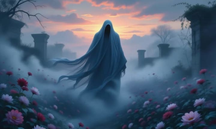 It floated just above the ground, cloaked in a pale, shimmering energy that made the air echo faintly. Its shape was vaguely human, but stretched, elongated, as though sculpted from something mysterious and old. It drifted along the garden’s winding paths, pausing at certain flowers - always the same ones, though no one alive knew why.
